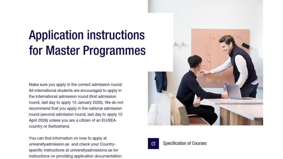 You can find information on how to apply at universityadmission.se and check your Country-specific instructions at universityadmissions.se for instructions on providing application documentation.