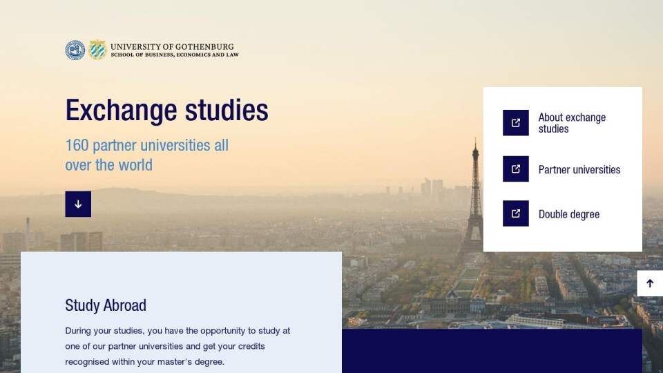 By studying abroad, you will be given the opportunity to experience a new academic environment, new culture and gain new experiences and perspectives. The School of Business, Economics and Law collaborates with a large number of partner universities all over the world. Exchanges are suitable for all programmes.