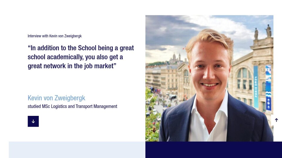 Kevin recommends the School's BSc programme in logistics to those who want to study business with a focus on logistics and who enjoy logic and problem solving. The MSc Logistics and Transport Management is recommended for those who are sure they like logistics and want to specialise in the field.