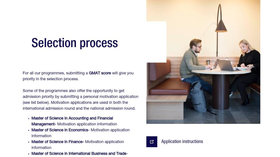 Some of the programmes also offer the opportunity to get admission priority by submitting a personal motivation application (see list below). Motivation applications are used in both the international admission round and the national admission round.